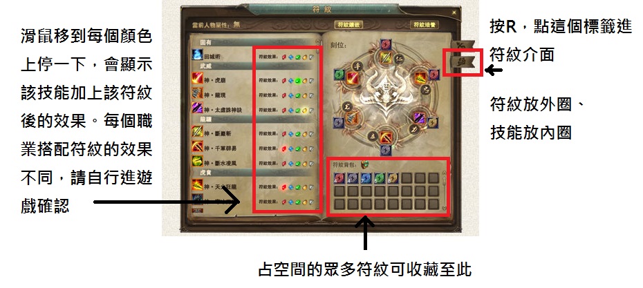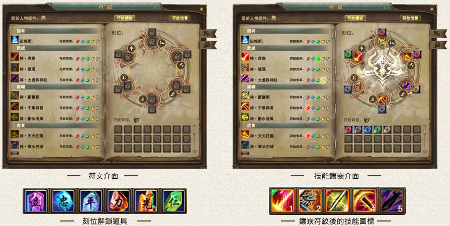 ◆ 5 類符紋能對應激活技能的不同效果,同等級符紋的屬性沒有區別。