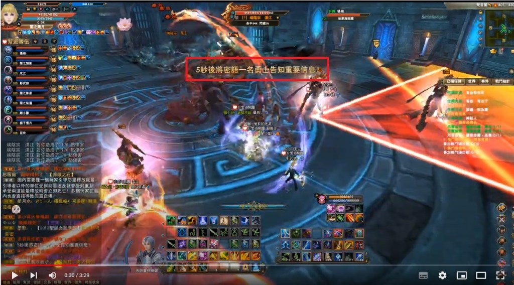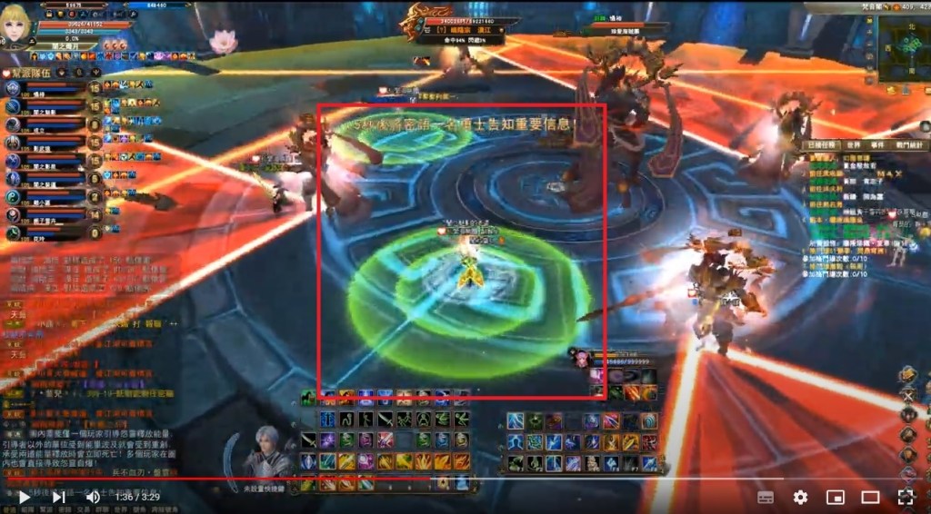 【百人】第一關(端陰宗=梵音閣) 2022-09-142024-05-05 熾心舞月 改版後直接火力輾壓即可 開打前 將9人分配好到這三色圈 圈是隨機出的 紅 黃圈的人要在原地站 出現扇形時 要面向牆壁 綠圈的人是炸彈 請隨機閃紅黃扇形 不要炸到紅黃圈裡的人 也不要被扇形掃到 站綠圈的人 記得身上一出圈 就要閃過其他圈裡和沒站圈的人不一定要到王附近 只要閃過扇形就好 否則 也是秒殺的 王會隨機密一個人告知方向 比如東和南 就要往西和北躲 搞不清方向 最快的相式是點右上小地圖跑 如影片那樣點過去 但 我們今天打的時候 很多次王都沒有密人 所以 死傷一片 凡是框起來的多多注意 傷害不大 最大傷害的是出圈和扇形 分享此文: 按一下即可分享至 X(在新視窗中開啟) X 按一下以分享至 Facebook(在新視窗中開啟) Facebook 喜歡 正在載入... 相關