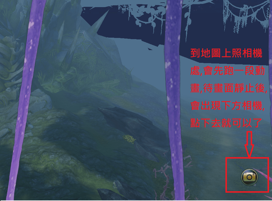 雷達上有相機標誌的位置,到位後右下角自動彈出拍照按鈕: