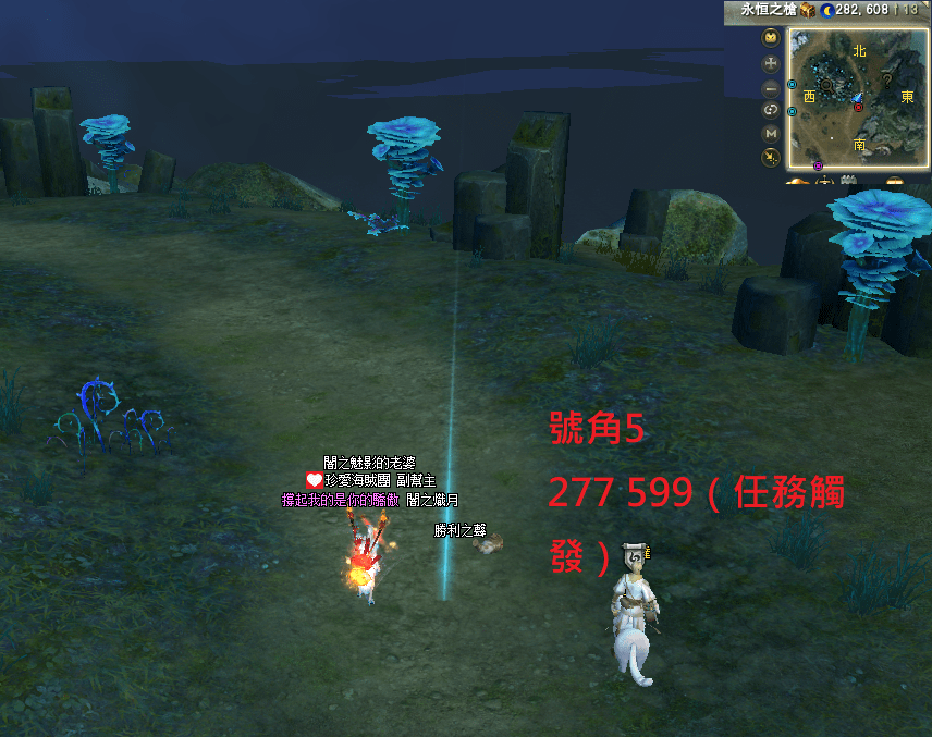 號角5→277 599(任務觸發)然後往282 608這個方向掃描, 281 607(號角挖取)永恆之槍