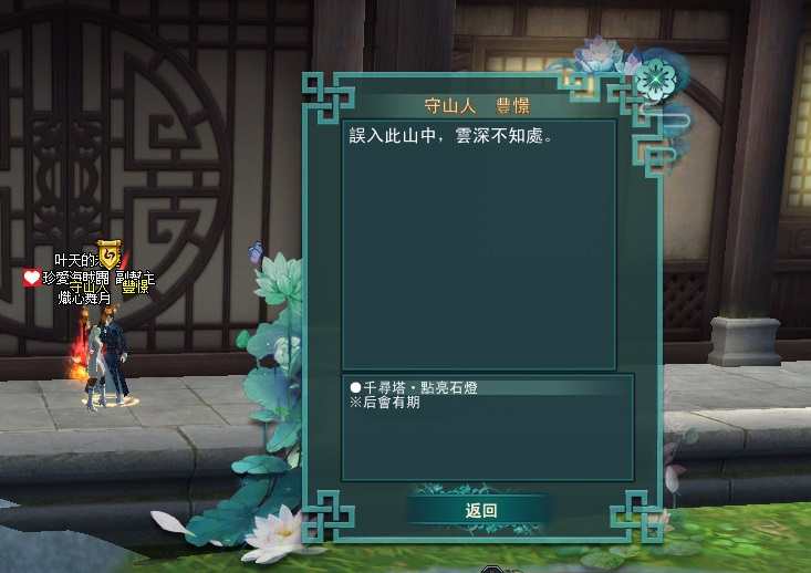 東陸世界•龍泉山的秘密第1章千尋塔•一朵小花之守山人(第一個任務完成接龍泉山) 2025-04-122025-05-13 熾心舞月 這個只需要挖 不用密碼 實驗的結果好像得近身打怪才能解到鑰匙任 這任務解完要回千尋塔回任塔外NPC賽慕,但我按太快了 來不及接 ,大家自己接一下嘿 分享此文: 按一下即可分享至 X(在新視窗中開啟) X 按一下以分享至 Facebook(在新視窗中開啟) Facebook 喜歡 正在載入... 相關