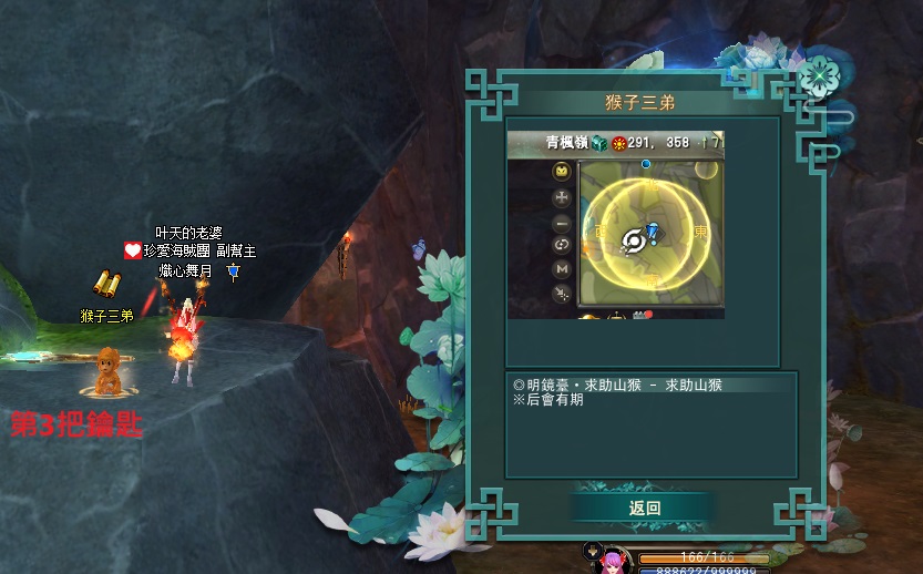 東陸世界•龍泉山的秘密第3章 明鏡台•破除封印(明鏡臺完成接成頌王陵) 2025-04-122025-05-12 熾心舞月 挖完鑰匙後會出現下面限時任務 打錯字 這把鑰匙是第四把 這把是第三把鑰匙 分享此文: 按一下即可分享至 X(在新視窗中開啟) X 按一下以分享至 Facebook(在新視窗中開啟) Facebook 喜歡 正在載入... 相關