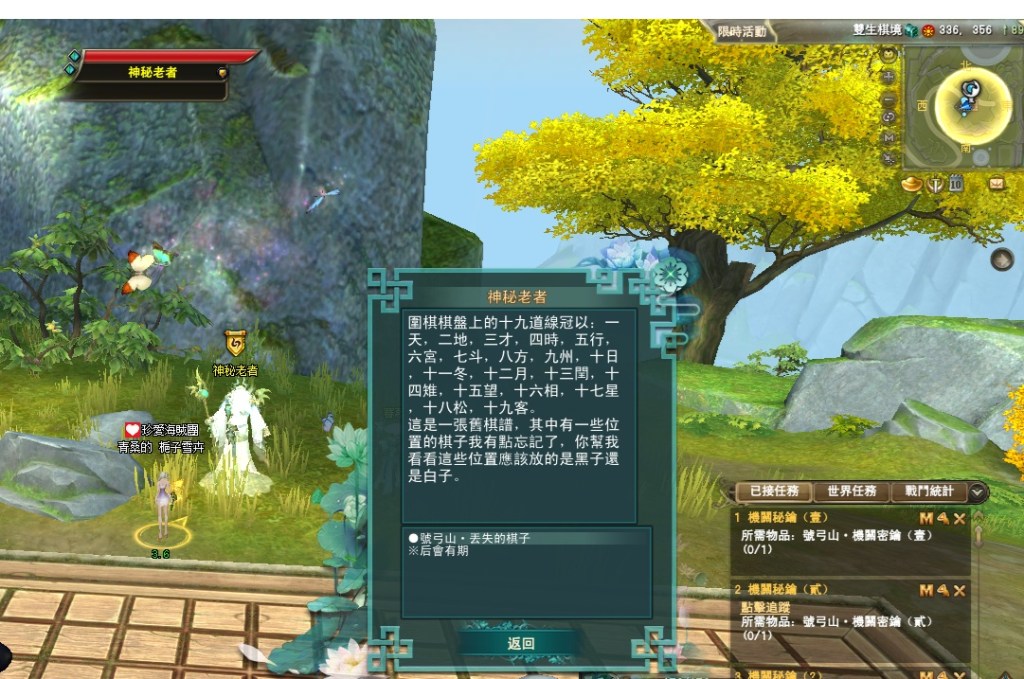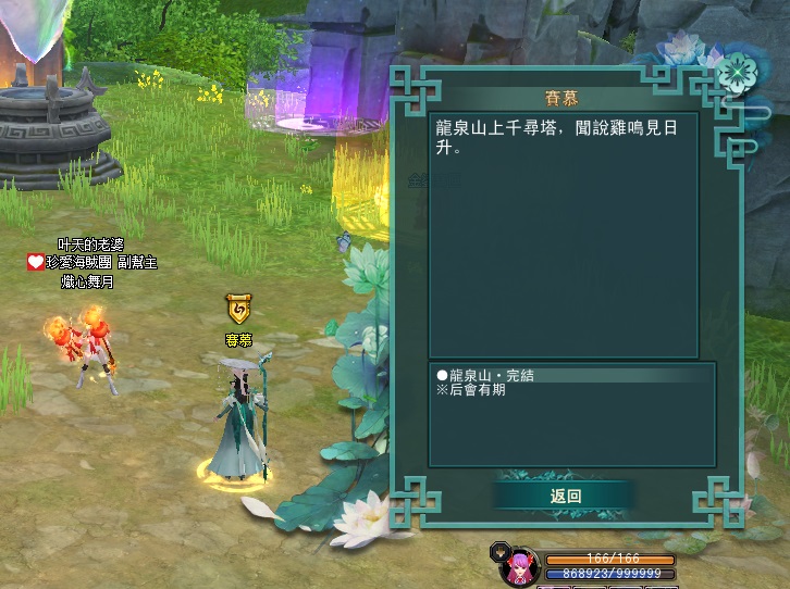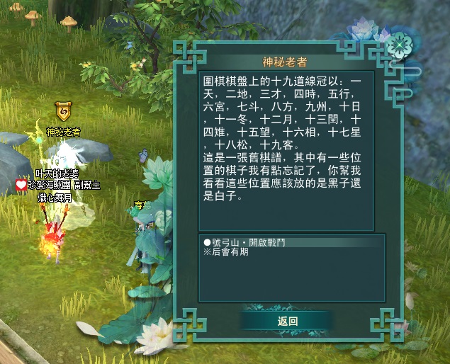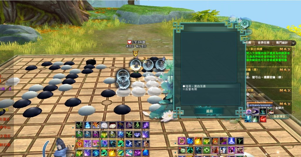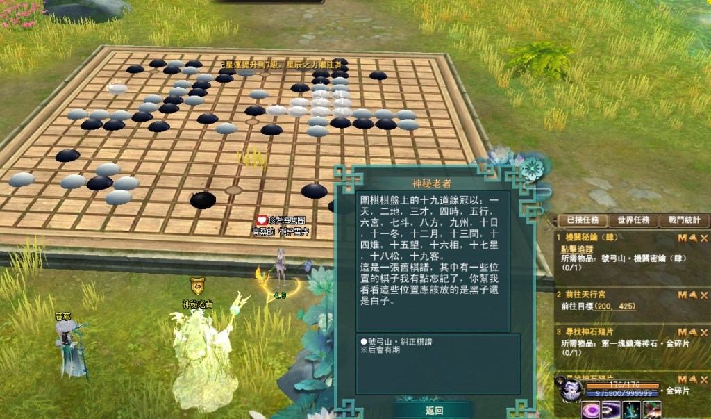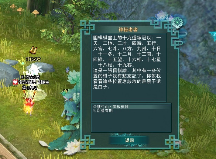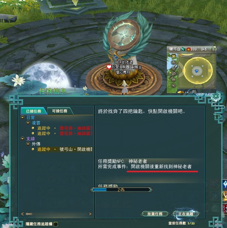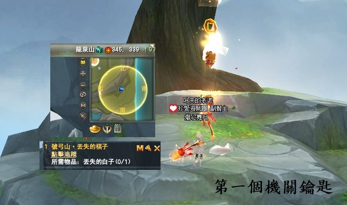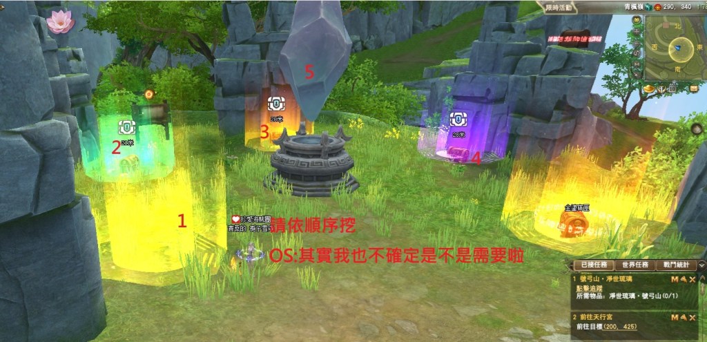 東陸世界•龍泉山的秘密第5章號弓山•尋找機關(一共5篇章,最後一章號弓山完成) 2025-04-122025-05-12 熾心舞月 測試後 請全部點完棋子後再去回任喔 不然會像我一樣 第一個解完回去找NPC失敗後重來 就是從第2顆開始解 分享此文: 按一下即可分享至 X(在新視窗中開啟) X 按一下以分享至 Facebook(在新視窗中開啟) Facebook 喜歡 正在載入... 相關