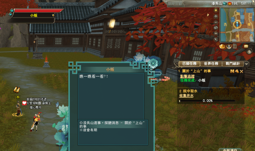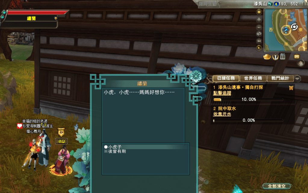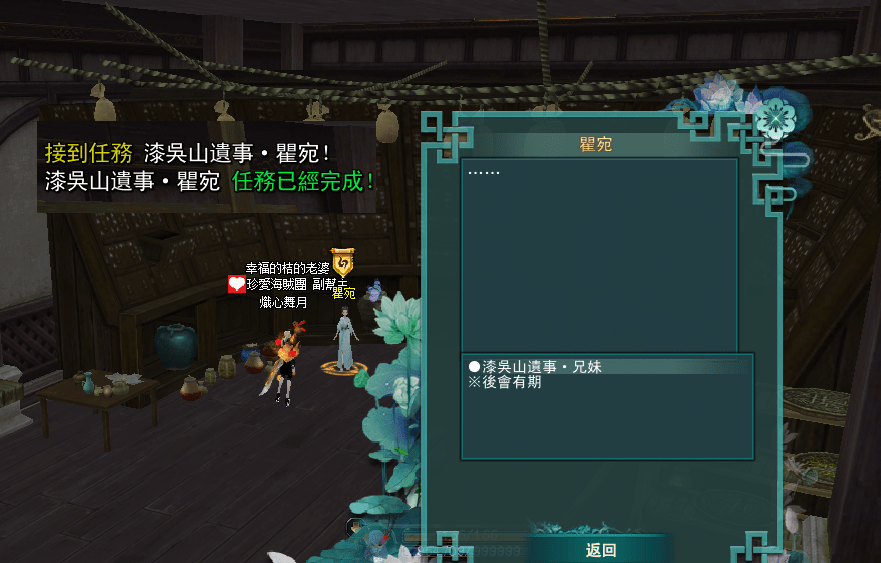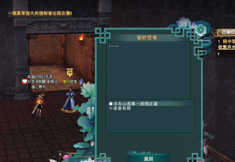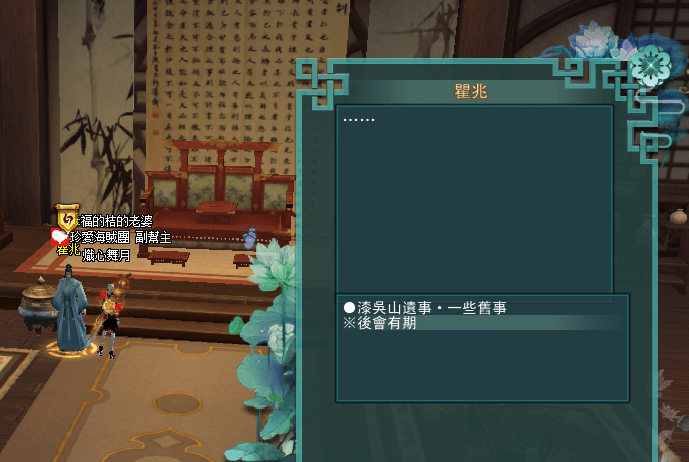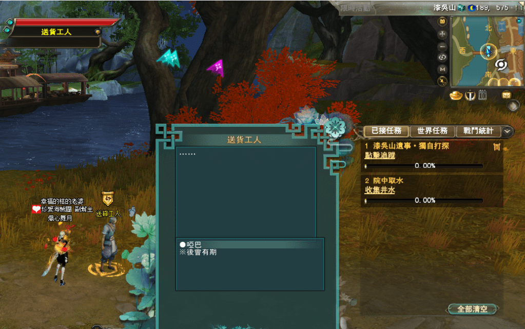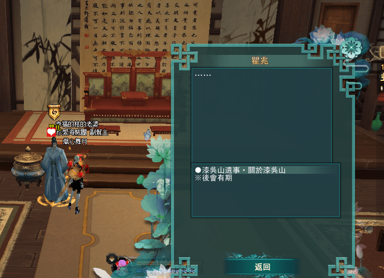 世界-楓橋幻戲夜話 第二章 漆吳山遺事 2025-11-072025-11-08 熾心舞月 座標182,574的山門任務訊息 點完後直接轉場到下一個點 分享此文: 按一下即可分享至 X(在新視窗中開啟) X 按一下以分享至 Facebook(在新視窗中開啟) Facebook 喜歡 正在載入... 相關