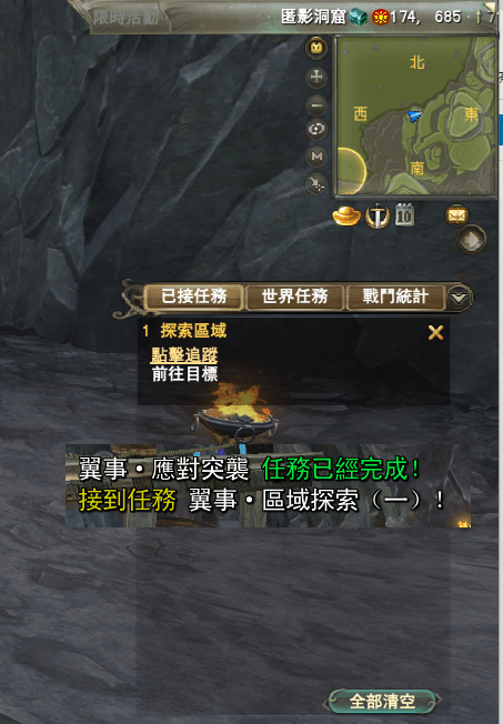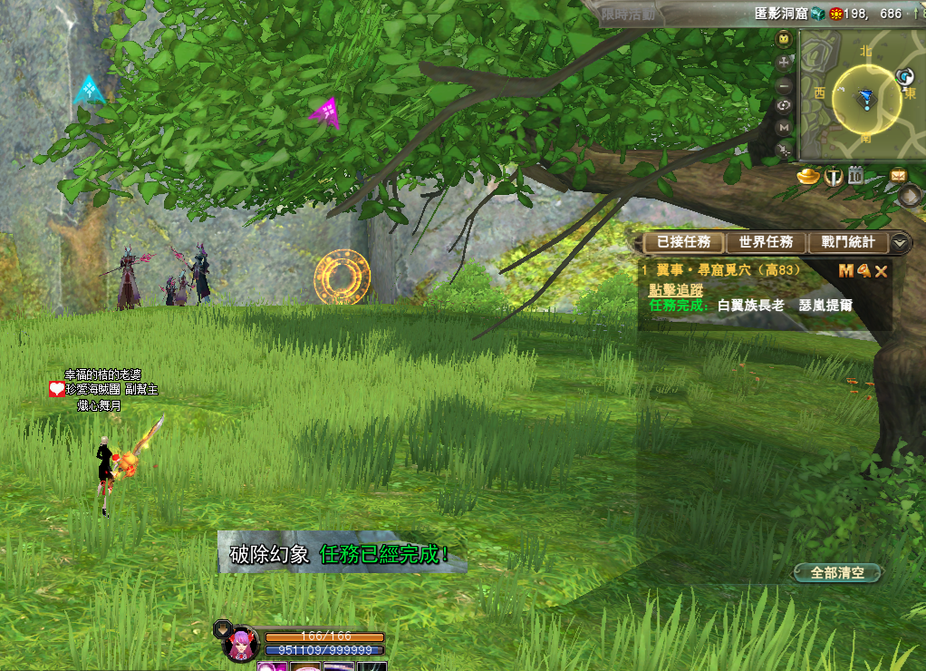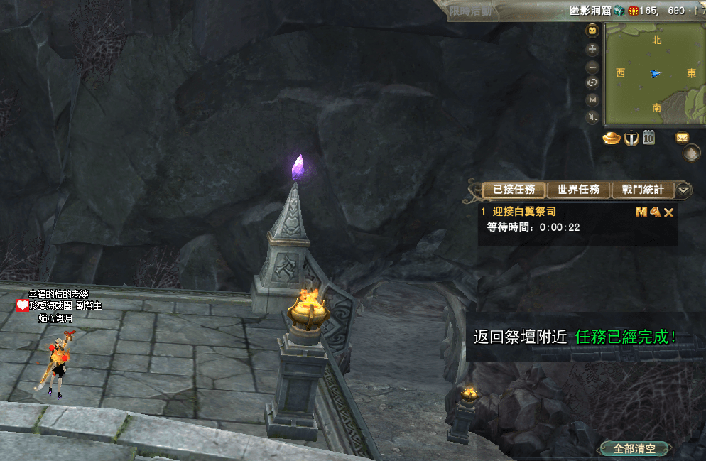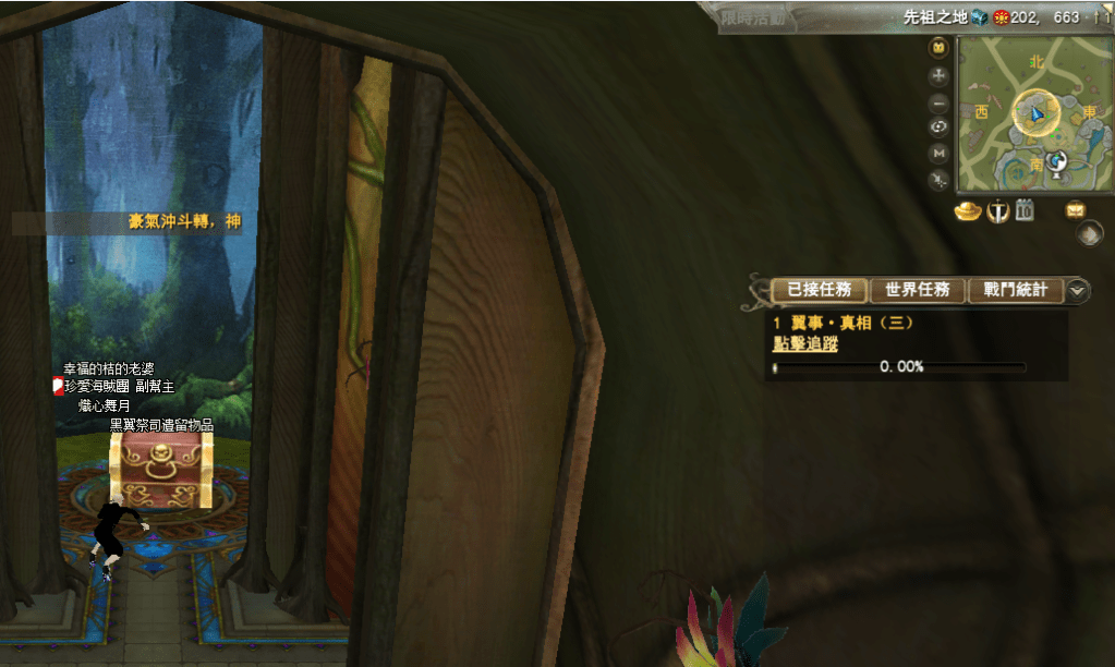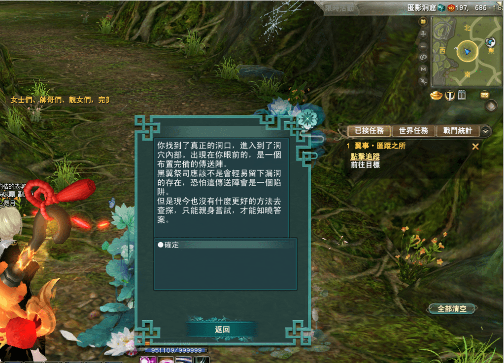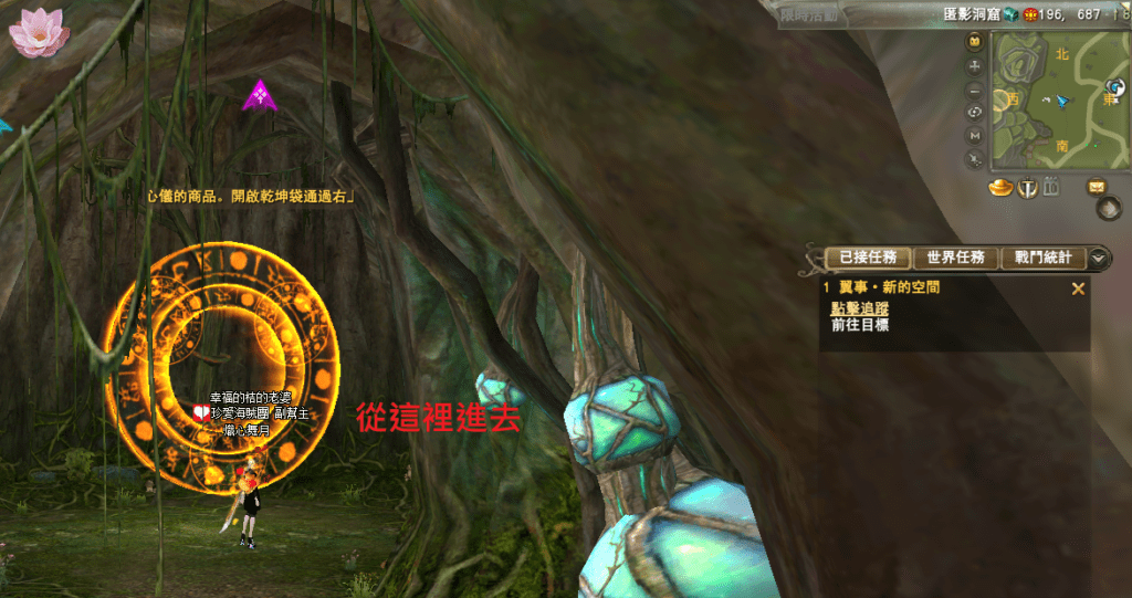 世界-同源黑白~翼事•叁(這篇才是往匿影洞窟任,同源黑白系列結束) 2025-11-082025-11-12 熾心舞月 npc這附近的3顆大樹點了就會出現斧頭 點下斧頭樹會消失 每次只有3分時間 一但斧頭消失 放棄任務會再重新給任用斧頭 這裡就是大家要找的炁跟寶箱要進去洞窟的傳點 分享此文: 按一下即可分享至 X(在新視窗中開啟) X 按一下以分享至 Facebook(在新視窗中開啟) Facebook 喜歡 正在載入... 相關