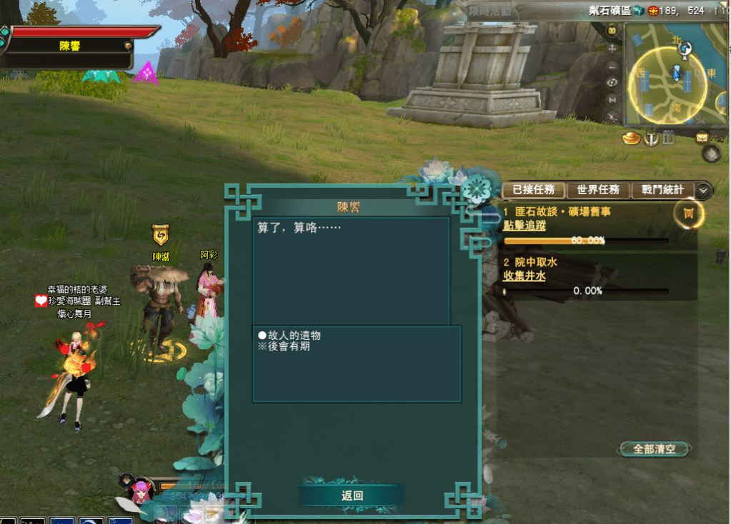 新東陸世界-楓橋幻戲夜話 第四章 匪石故談 2025-11-082025-12-28 熾心舞月 232 539 觸發暗中探訪 記得挖寶箱 分享此文: 分享到 X(在新視窗中開啟) X 分享到 Facebook(在新視窗中開啟) Facebook 喜歡 正在載入... 相關