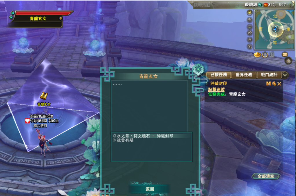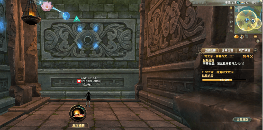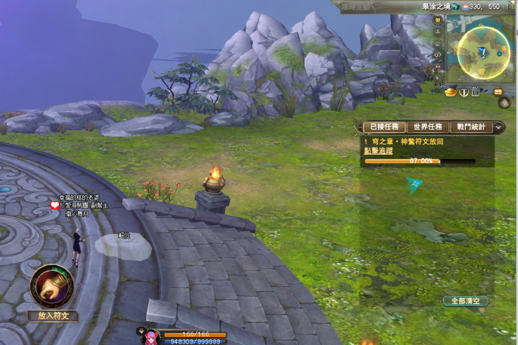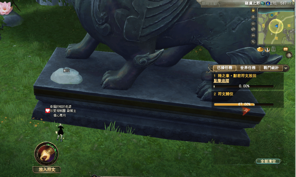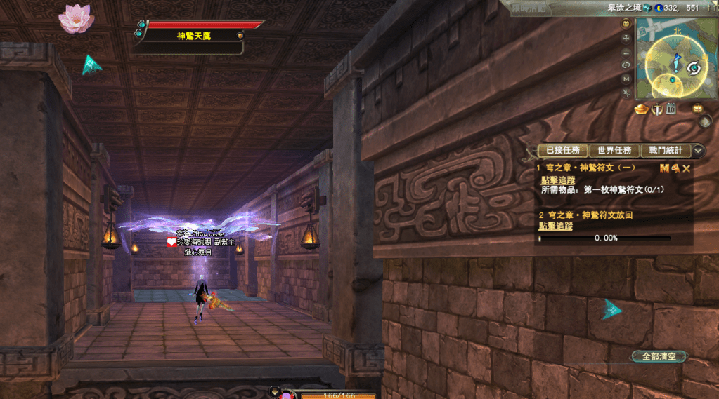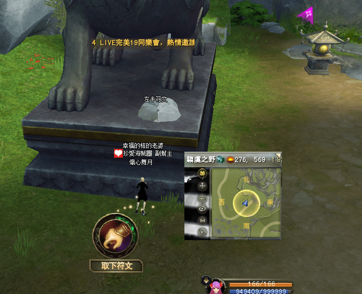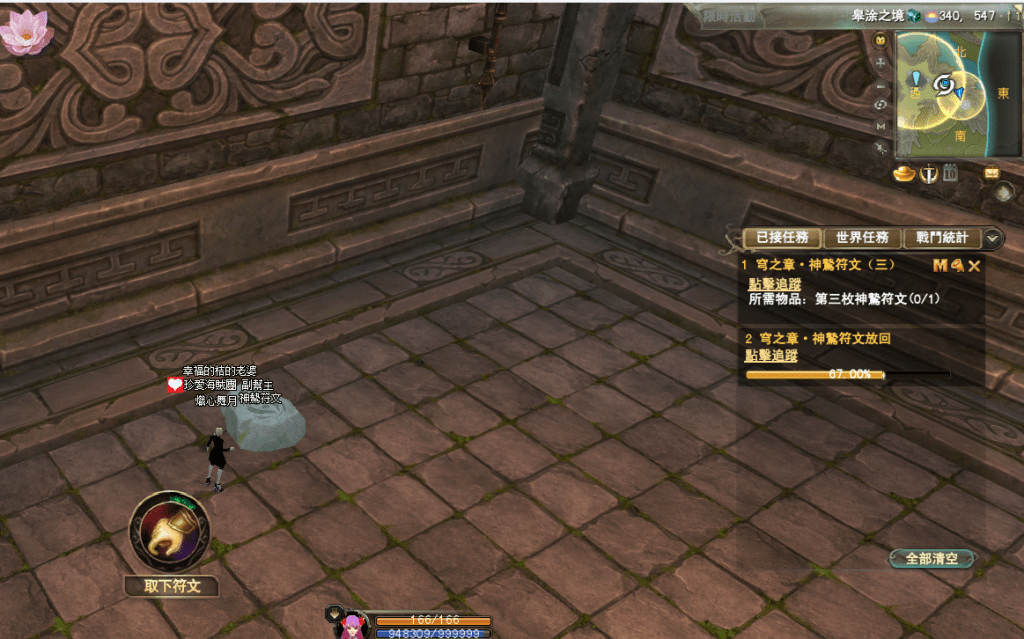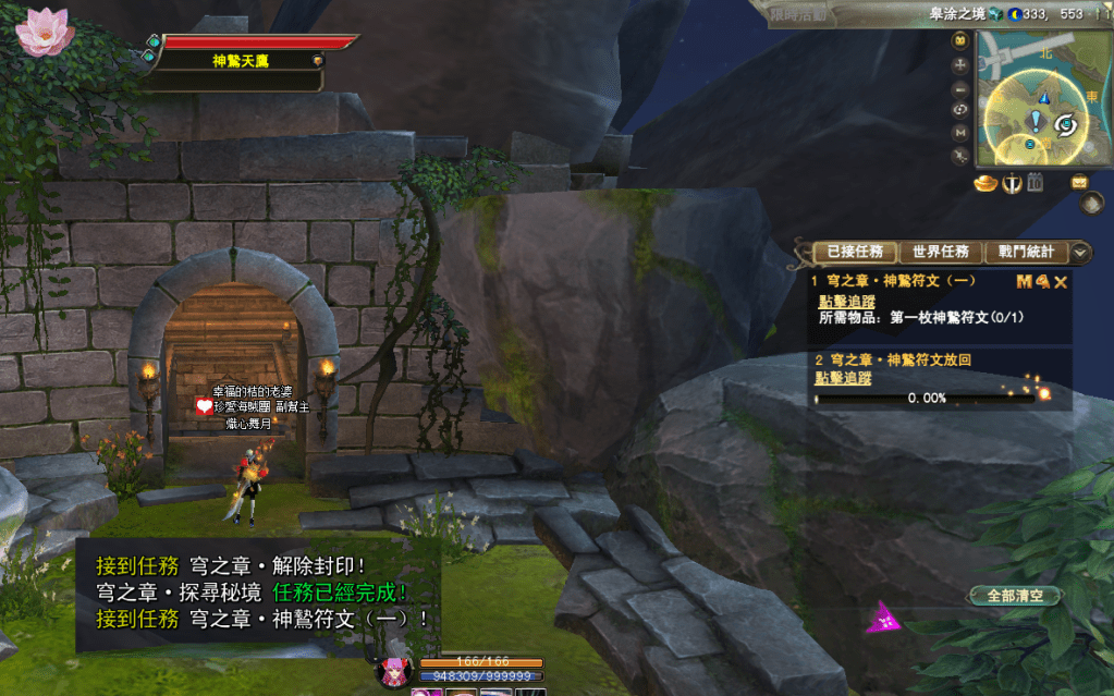 世界-靈山神秀(鷹洞在此篇~此系列 已完結) 2025-11-082025-11-12 熾心舞月 任務文件 打開包包按右鍵 每挖完一個符文記得要先往任務點放上符文 挖到解到符文為止 橋下的水裡 打錯 是變透明後才能移動 若來不及移動(像我在打字或截圖時 牆變白色後 可以利用畫面角度來點陰陽球 啟動) 小怪可以不理會他 方式都一樣 靈石的對面往上飛 就會看見這面牆 靈石要記得挖啊 不然是開不了牆面的 挖完炁後 記得飛起來到下方圖片那挖靈石 完成成就四通五達 分享此文: 按一下即可分享至 X(在新視窗中開啟) X 按一下以分享至 Facebook(在新視窗中開啟) Facebook 喜歡 正在載入... 相關
