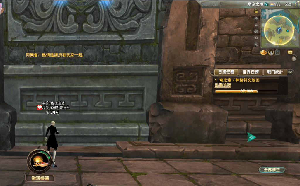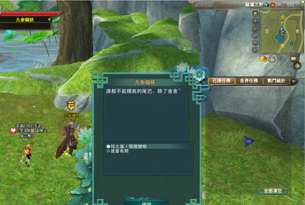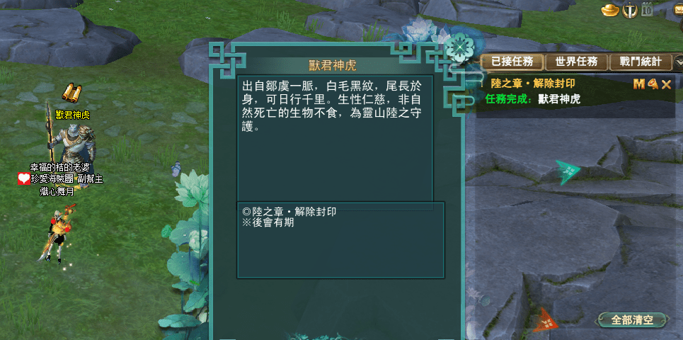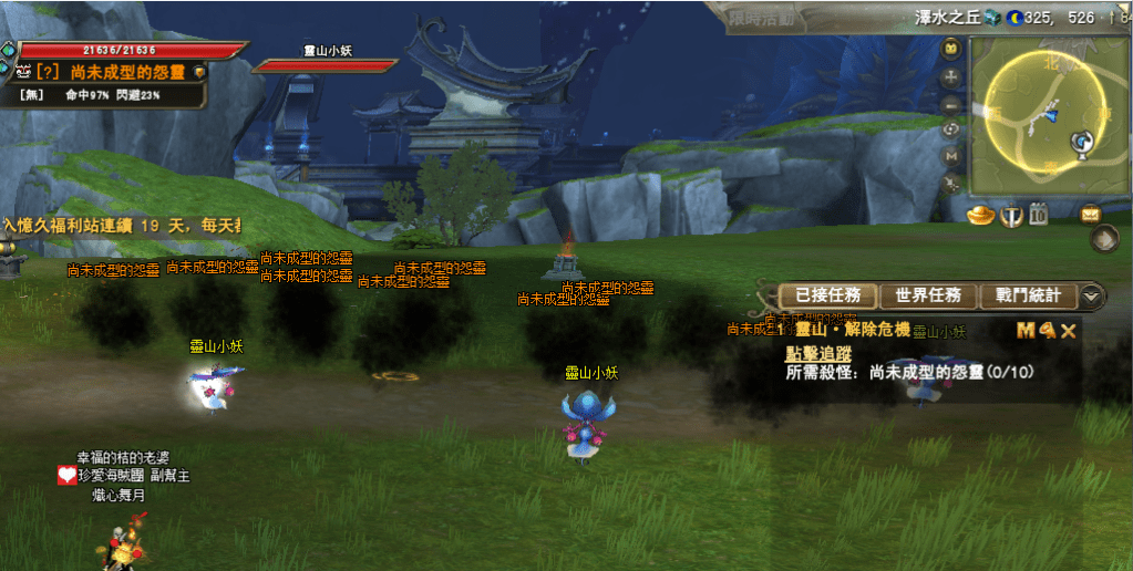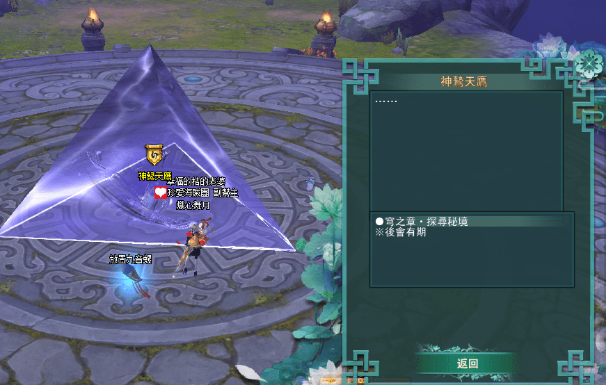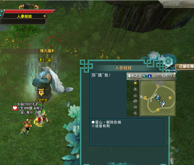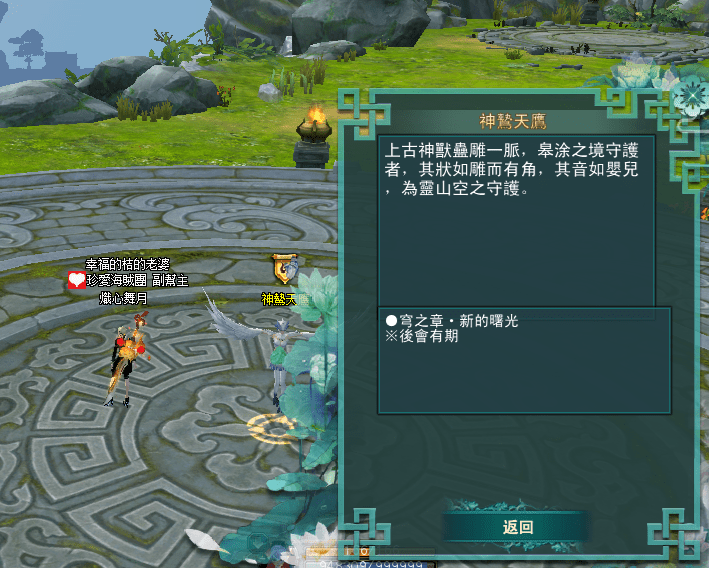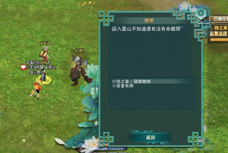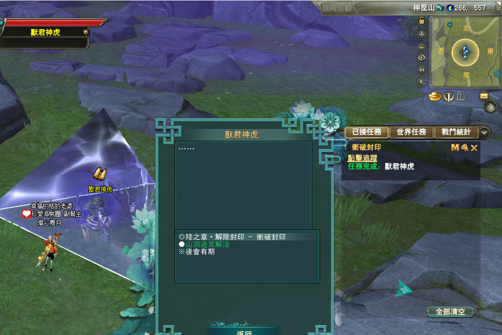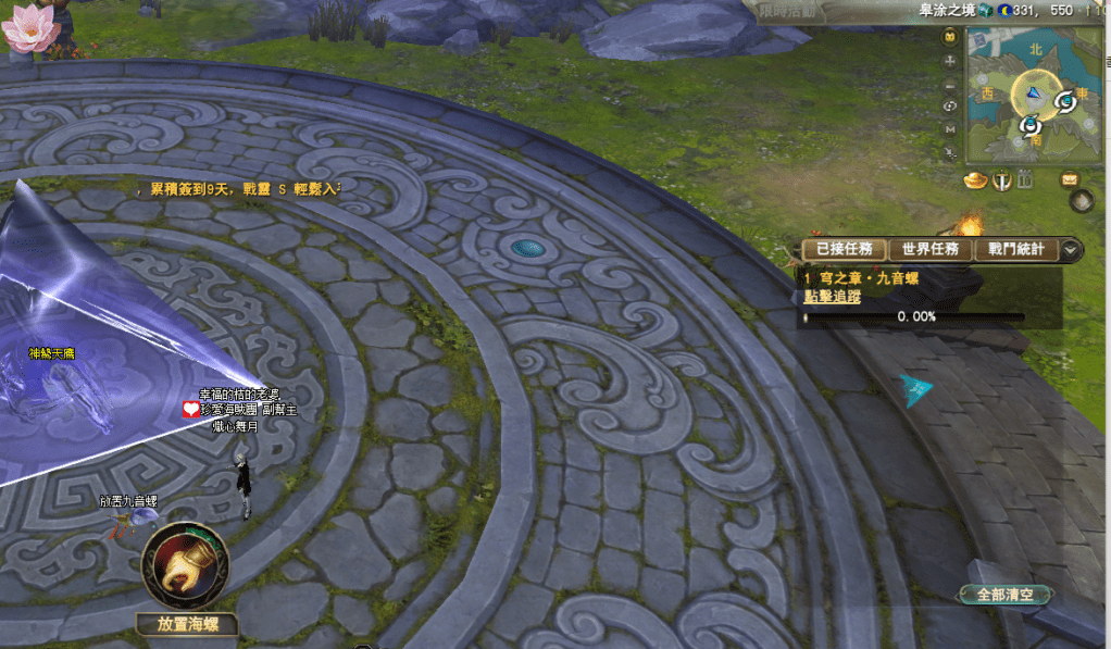 世界-靈山神秀(鷹洞在此篇~此系列 已完結) 2025-11-082025-11-12 熾心舞月 任務文件 打開包包按右鍵 每挖完一個符文記得要先往任務點放上符文 挖到解到符文為止 橋下的水裡 打錯 是變透明後才能移動 若來不及移動(像我在打字或截圖時 牆變白色後 可以利用畫面角度來點陰陽球 啟動) 小怪可以不理會他 方式都一樣 靈石的對面往上飛 就會看見這面牆 靈石要記得挖啊 不然是開不了牆面的 挖完炁後 記得飛起來到下方圖片那挖靈石 完成成就四通五達 分享此文: 按一下即可分享至 X(在新視窗中開啟) X 按一下以分享至 Facebook(在新視窗中開啟) Facebook 喜歡 正在載入... 相關