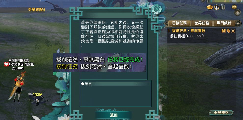 世界- 拔劍茫然(已完結~~感謝大家的觀看 辛苦各位的眼力了!) 2025-11-122025-11-12 熾心舞月 這任 自由選擇 不用跟我一樣 選不打死 (以下任務依自己選的為主 自行繼續解下去就可以了喔~) 分享此文: 按一下即可分享至 X(在新視窗中開啟) X 按一下以分享至 Facebook(在新視窗中開啟) Facebook 喜歡 正在載入... 相關